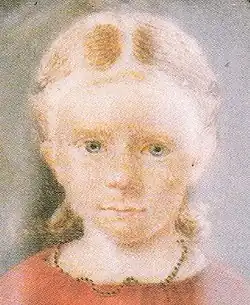 Clara Wieck 1828, im Jahr ihres ersten großen Auftritts als Pianistin, Elfenbeinminiatur (Ausschnitt)