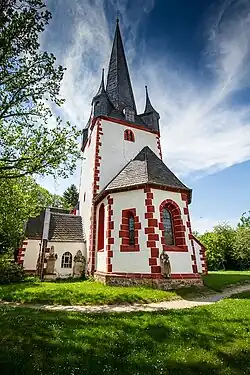 Die Kirche Roda ist eine im Kern romanische Saalkirche, die im 15. Jahrhundert grundlegend umgebaut wurde. Der Turm ging Mitte des 15. Jh. aus einem bereits bestehenden Turmhaus hervor. Große Erneuerungen fanden 1608, 1709–1717, 1811 und 1905 mit einer Verlängerung des Schiffs um 5,5 Meter statt. 1885 erhielt die Kirche eine neue Turmuhr. 1897 wurde eine einfache Beleuchtung im Gebäude installiert.[6]