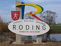 Logo der Stadt Roding – Begrüßungstafel am Ortseingang