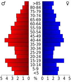 23,8 Prozent der Bevölkerung waren unter 18 Jahre alt, 6,7 Prozent zwischen 18 und 24, 24,7 Prozent zwischen 25 und 44, 26,0 Prozent zwischen 45 und 64 und 18,7 Prozent waren 65 Jahre oder älter. Das Durchschnittsalter betrug 42 Jahre. Auf 100 weibliche Personen kamen 100,5 männliche Personen. Auf 100 Frauen im Alter von 18 Jahren oder darüber kamen 96,9 Männer.