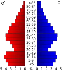 28,7 Prozent der Bevölkerung waren unter 18 Jahre alt, 7,4 Prozent zwischen 18 und 24, 28,6 Prozent zwischen 25 und 44, 24,0 Prozent zwischen 45 und 64 und 11,3 Prozent waren 65 Jahre oder älter. Das Durchschnittsalter betrug 36 Jahre. Auf 100 weibliche Personen kamen 96,8 männliche Personen. Auf 100 Frauen im Alter von 18 Jahren oder darüber kamen 94,4 Männer.