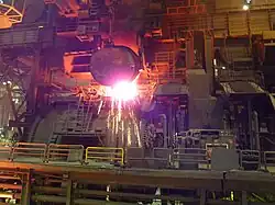Ein Roheisenmischer ist ein kippbarer, feuerfest ausgekleideter und beheizter Behälter, der die vom Hochofen erzeugte Roheisenmengen aufnimmt und deren zeitliche Verwendung für die Stahlerzeugung unabhängig vom Roheisenanfall gestattet.