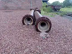 - Die passiven Reinigungskörper können sowohl Bürsten, oder spezielle Konstruktionen wie beispielsweise Molche (siehe aber auch unten) sein, die mittels Druckluft, Wasser oder einem sonstigen Fördermedium durch die Rohre bewegt werden. Meist erfolgt die Reinigung durch das Übermaß der Reinigungskörper gegenüber dem Rohrinnendurchmesser. Die Typen reichen von Bürsten mit Borsten aus Kunststoff- oder Stahl, Schabern bei kleineren Rohrdurchmessern bis hin zu aufwendigen Konstruktionen mit eingebauten Sprühdüsen bei Pipelines. Angewendet wird diese Methode im Nennweitenbereich von ca. 5 mm bis hin zu mehreren Metern. In den gleichen Bereich fällt auch die Reinigung verstopfter Abflussrohre häuslicher Abwasserleitungen mit einer sich drehenden biegsamen Welle (Rohrreinigungsspirale).