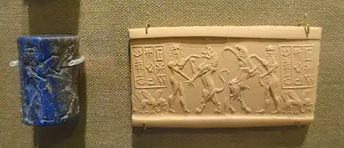 - ↑ R. M. Boehmer: Die Entwicklung der Glyptik während der Akkad-Zeit. Berlin 1965, S. 194 → Abbildung.
