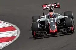 Für die Formel-1-Weltmeisterschaft 2016 war Grosjean eigentlich weiterhin als Stammpilot bei Lotus vorgesehen,[20] allerdings teilte er dem Team Mitte September mit, es zum Saisonende zu verlassen.[21] Grosjean wechselte stattdessen zum US-amerikanischen Rennstall Haas, der neu in die Formel 1 eingestiegen war.[22] Bereits beim Saisonauftakt in Australien erzielte Grosjean mit dem sechsten Platz die ersten Punkte für Haas. Ein Rennen später in Bahrain übertraf er das Ergebnis mit dem fünften Platz. Er schloss die Saison auf dem 13. Gesamtrang ab und setzte sich intern mit 29 zu 0 Punkten gegen Esteban Gutiérrez durch. 2017 blieb Grosjean bei Haas in der Formel 1.[23] Sein neuer Teamkollege wurde Kevin Magnussen. Am Saisonende lag er auf dem 13. Gesamtrang mit 28 Punkten.