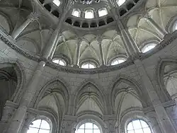 - Nach gotischem Umbau (ab 1180er Jahren) abgesehen von den Glasebenen der Fenster des Ostbaus gotisch.