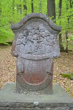 Pfarrer Kraft errichtete an der Stelle der einstigen Kapelle ein hölzernes Kreuz. 1754 ließ Rektor Johann Eschborn im Auftrag seines Schwiegervaters Georg Burckharth zwei Votivsteine aufstellen. Diese zeigen die 14 Nothelfer. Anlass war ein verhinderter Unfall, nachdem Holzarbeiter die 14 Nothelfer angerufen hatten. 1776 ließen die Eheleute Georg und Katarina Kreiner das hölzerne Kreuz durch das heutige, steinerne Kreuz ersetzen.