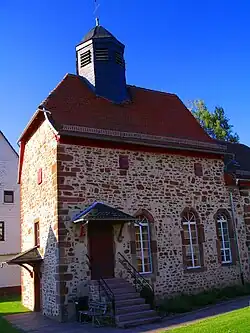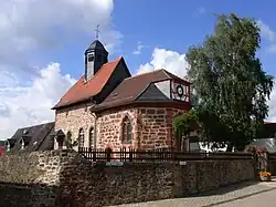 1420 wurde die Kirche erstmals urkundlich erwähnt. Nach dem Dreißigjährigen Krieg wurde sie durch den hessischen Hofmarschall Jakob von Hoff neu errichtet. Das alte Patronatswappen und der ehemalige Patronatssitz, welcher im Volksmund heute noch respektlos „Käfig“ genannt wird, zeugen von dem alten Kirchenrecht. Die vorhandene Grabplatte der Margarete Rink, Gemahlin des landgräflichen Rats Reichart Rinck, erinnert zudem an die Erbauer des Schlosses.