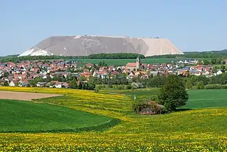 Ansicht von Rommerz mit dem Monte Kali von Neuhof und der kath. Mariä-Himmelfahrt-Kirche