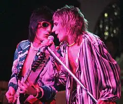 Ron Wood und Rod Stewart bei einem Auftritt der Faces, 1975