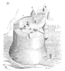 Durch die im Vergleich zum Turm massivere Konstruktion des Rondells wurde die Platzierung von schweren Geschützen ermöglicht. Als Baumaterial fanden sowohl Erde als auch Mauerwerk Verwendung; im letzteren Fall konnten auch überwölbte Räume (Kasematten) im Inneren eingerichtet werden.