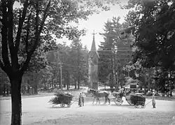 Der Name Rondell rührt von einem runden Rasenstück her, das den Obelisken umgab. Auf der gegenüberliegenden Straßenseite befindet sich das Waldarbeiterdenkmal.