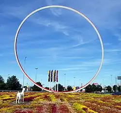 Im Frühjahr 2006 stellte die Künstlerin Stina Opitz ihr Kunstwerk Cirkulation II in einem Kreisverkehr der Stadt Linköping auf. Es bestand aus einem 70 Zentimeter hohen, aus weißem Beton gefertigten Hund[1] und einem Betonreifen mit 9,0 Meter Durchmesser, der in einem Winkel von 45 Grad aufragte. Kurze Zeit später war der Kopf des Hundes von Vandalen zerstört. Noch während darüber diskutiert wurde, wie das Werk am besten zu ersetzen sei, stellten Thomas Nordmark und Rickard Leckne einen Holzhund[2] an gleicher Stelle auf, der kurz darauf durch einen Hundeknochen[3] aus Beton ersetzt wurde.