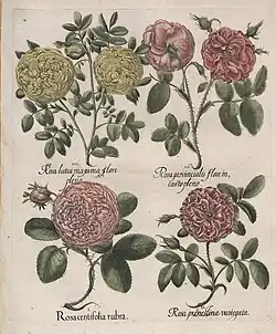 - ↑ a b Johannes Herrmann: Rosa hemisphaerica, in: Dissertatio inauguralis botanico medica de Rosa…, 1762, S. 18–19 (Latein; Abruf am 1. Oktober 2022)