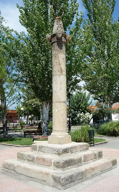 - Die auf einem abgetreppten quadratischen Sockel ruhende Gerichtssäule (rollo oder picota) stand zuvor im 1963 aufgegebenen Ort Talavera la Vieja (39° 48′ 18″ N, 5° 24′ 25″ W).