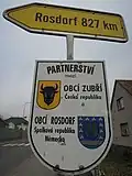 Seit 1993 besteht eine Städtepartnerschaft zwischen der Gemeinde Rosdorf und der Stadt Zubří in der Tschechischen Republik.[30] Für diese lebendige Partnerschaft zeichnete der Europarat die Gemeinde Rosdorf im Jahr 2004 mit dem Europadiplom aus.[31] Inzwischen erhielten die Gemeinde Rosdorf und die Stadt Zubří auch die Ehrenfahne des Europarates.[31]