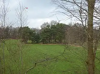 Es handelt sich um die Reste einer kleinen Niederungsburg, die atypisch viereckige Wälle hatte, das innere Viereck mit ca. 7–8 m Kantenlänge und das äußere mit ca. 20 m. Der etwa von Südwest nach Nordost verlaufende Zugang war durch zwei weitere Wälle und dazwischen liegende Gräben geschützt, während das übrige Gelände um die Burg so morastig war, dass sich von dort kein Feind nähern konnte. Wallreste im größeren Abstand zur Burg lassen vermutet, dass bei Gefahr das ganze Gelände durch die Stauung des Baches geflutet werden konnte, der 1979 noch östlich an der Burg in Richtung des heute nicht mehr existierenden Hymensees vorbeifloss.