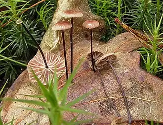 - ↑ Jadson J. S. Oliveira, Ruby Vargas-Isla, Tiara S. Cabral, Doriane P. Rodrigues, Noemia K. Ishikawa: Progress on the phylogeny of the Omphalotaceae: Gymnopus s. str., Marasmiellus s. str., Paragymnopus gen. nov. and Pusillomyces gen. nov. In: Mycological Progress. Band 18, Nr. 5, Mai 2019, ISSN 1617-416X, S. 713–739, doi:10.1007/s11557-019-01483-5.