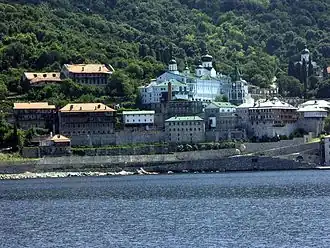 - ↑ a b Andreas E. Müller: Berg Athos. Geschichte einer Mönchsrepublik. C.H. Beck, München 2005, S. 109.