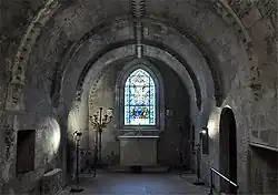 Unterhalb der Kirche befindet sich eine Krypta. Die Krypta war über eine Treppe im hinteren Bereich der Kirche zugänglich. Der Zugang wurde versiegelt. Dies führte zu Spekulationen darüber, was sich in der Krypta neben den Gräbern der Ritter der Familie Sinclair befindet. Die Spekulationen reichen von der Behauptung, der mumifizierte Kopf Jesu Christi sei dort aufbewahrt,[7] in der Krypta sei der legendäre Schatz der Tempelritter versteckt,[8] bis hin zu der Behauptung, die Krypta verberge die schottischen Kronjuwelen.[9]