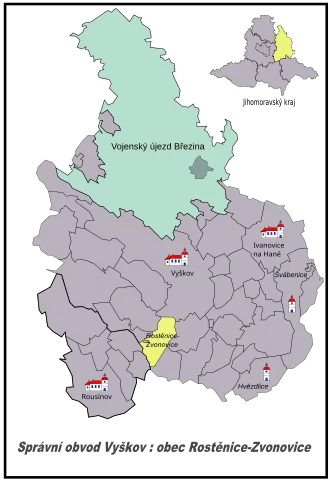 | Lage von Rostěnice-Zvonovice im Bezirk Vyškov | |||||
