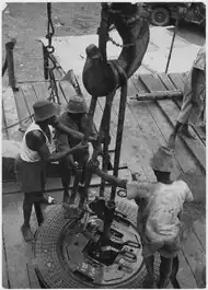 - Kloben, Traveling Block. Der Kloben ist die Unterflasche des Flaschenzugs des Hebewerks.