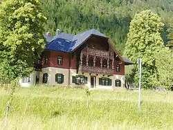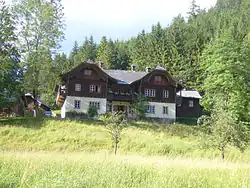 Das große Jagdhaus bei Göstling an der Ybbs am Ende des Steinbachtales brannte vor einigen Jahren ab.[2][1]