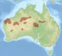 Der Rotscheitel-Borstenschwanz ist ein endemischer Bewohner Australiens. Sein Verbreitungsgebiet erstreckt sich als breites Band etwa von der Pilbara-Region in Western Australia bis in die Grasebene Barkly Tableland im Westen Queenslands und in die Simpsonwüste des Northern Territory. Es handelt sich dabei jedoch nicht um ein zusammenhängendes Gebiet, sondern um eine Reihe teilweise voneinander isolierter Gebiete mit für die Art geeignetem Habitat.[3] Allerdings ist es möglich, dass die Vögel auf Grund ihrer geringen Größe und ihres eher leisen Gesangs in manchen Gegenden schlicht übersehen werden. So gelangen etwa erstmalige Nachweise in den östlichen Regionen des Verbreitungsgebiets erst in den 1960er- beziehungsweise 1970er-Jahren.[4][5] Während der globale Bestand nicht als gefährdet gilt, sind einzelne Populationen vor allem durch die in Häufigkeit und Schwere zunehmenden Buschfeuer in Australien gefährdet.[1] Die IUCN stuft den Rotscheitel-Borstenschwanz mit Stand 2016 als least concern („nicht gefährdet“), stellt jedoch einen abnehmenden Trend bei den Bestandszahlen fest.[6]