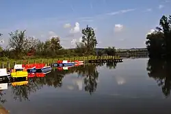 Am südlichen Ufer befindet sich ein Bootshafen. Ganz in der Nähe liegt ein Segelflugplatz. Von den etwa 300 Hektar See- und Ufergebiet sind ca. 20 Hektar Biotopflächen und 50 Hektar extensiv bewirtschaftete Wiesenflächen, dadurch Heimat von zum Teil seltenen Tier-[6] und Pflanzenarten. Das Gebiet ist auch ein wichtiger Rastplatz für Zugvögel.