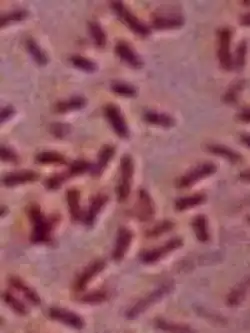 Burkholderia mallei ist ein gramnegatives Stäbchen, das keine Endosporen bildet und bei 37 °C unter aeroben Bedingungen langsames Wachstum auf einfachen oder zusammengesetzten Nährböden zeigt. Obwohl das Bakterium keine Kapsel im eigentlichen Sinn besitzt, weist es eine kapselähnliche Struktur aus neutralen Zuckerverbindungen auf.[20] Das Fehlen der Begeißelung und die daraus resultierende Unbeweglichkeit stellen ein wichtiges diagnostisches Kriterium dar.