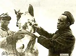 Während des Kriegsdienstes wurde das Immunsystem der Tiere durch Überanstrengung, Verletzungen, Infektionskrankheiten (z. B. Räude), Mangelernährung, Hitze- und Kältestress stark geschwächt. Die Unterbringung erfolgte in überbelegten, unzureichenden Stallungen, die gemeinsame Nutzung von Tränken, Eimern, Trögen und anderem Zubehör war die Regel. In Pferdedepots und Lazaretten wurden große Tiermengen aufgestallt, die erhebliche Zu- und Abgänge zu verzeichnen hatten.[39] Durch Zusammenschluss und Austausch von Truppenteilen sowie Lieferung von Ersatzpferden erfolgte ein Tierverkehr über weite Strecken.[40] Gründliche diagnostische Untersuchungen der Tiere konnten aus Mangel an Zeit, qualifiziertem Personal und optimaler Ausstattung auch im 20. Jahrhundert nicht immer durchgeführt werden. Der Kontakt mit feindlichen berittenen Einheiten oder einheimischen Equiden sowie die Requirierung von Beutepferden aus verseuchten Gebieten förderte die Einschleppung des Erregers und weitere Verbreitung der Infektion.