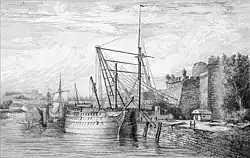![]() Die Royal Louis im Hafen von Brest beim Setzen der Masten.