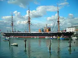 - Portsmouth („HMS Nelson“) in Südengland ist der wichtigste Hafen der Royal Navy. Hier sind beide Flugzeugträger[6][7], die Zerstörer und Minensuchboote sowie ein Teil der Fregatten stationiert. Auch mehrere Patrouillenboote sind in Portsmouth beheimatet sowie früher das Antarktisforschungsschiff Endurance. Zudem befindet sich hier das Hauptquartier der Royal Navy sowie das U-Boot-Trainingszentrum Gosport („HMS Sultan“).