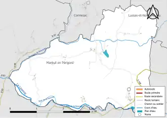 Die Südgrenze des Gemeindegebietes zu Saint-Sulpice-de-Mareuil wird von der nach Westen fließenden Nizonne gebildet. Mit Erreichen der ehemaligen Gemeindegrenze von Puyrenier dreht der Fluss dann nach Nordwest. Den Norden der Gemeinde durchfließt der von Lussas kommende linke Seitenarm des Ruisseau de Beaussac, der in seinem Oberlauf bei La Brousse saisonbedingt trockenfällt. Er vereinigt sich nördlich von Roussiaud mit dem Ruisseau de Beaussac, der nach Südwesten entwässert und beim Pont du Râteau als rechter Seitenarm in die Nizonne mündet. Der linke Seitenarm bildet ab Leycoussaudie die Nordgrenze zu Connezac, die Nordwestgrenze zu Mareuil en Périgord (Beaussac) wird dann vom Ruisseau de Beaussac gestellt.