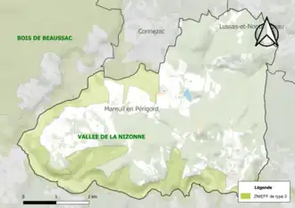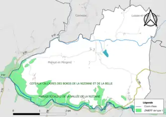 Unter dem Titel Marais alcalins de la vallée de la Nizonne (alkalische Sümpfe des Nizonne-Tals) besteht eine weitere ZNIEFF des Typus 1. Dieses recht schmale, nur 70 Hektar umfassende Gebiet umfasst den Flusslauf der Nizonne und den letzten Kilometer des Ruiseeau de Baussac. Hier leben 12 charakteristische Tierarten: Helm-Azurjungfer (Coenagrion mercuriale), Kreuzenzian-Ameisenbläuling (Phengaris rebeli), Heller Wiesenknopf-Ameisenbläuling (Phengaris teleius), Europäische Sumpfschildkröte (Emys orbicularis), Gekielter Flussfalke (Oxygastra curtisii), Großer Feuerfalter (Lycaena dispar), Stromtal-Wiesenvögelchen (Coenonympha oedippus), Französische Keiljungfer (Gomphus graslinii), Fischotter (Lutra lutra), Europäischer Laubfrosch (Hyla arborea), Marmormolch (Triturus marmoratus) und Europäischer Nerz (Mustela lutreola). Hinzu kommen die typischen 5 Pflanzenarten Schachblume (Fritillaria meleagris), Lungen-Enzian (Gentiana pneumonanthe), Gelbe Wiesenraute (Thalictrum flavum), Gewöhnliches Pfeilkraut (Sagittaria sagittifolia) und Verkannter Wasserschlauch (Utricularia australis). Kennzeichnendes Taxon dieser Seichtwasserzone ist das Gewöhnliche Pfeilkraut.