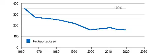 Die Bevölkerungsentwicklung in Rudeau-Ladosse ist sehr stark rückläufig, die Bevölkerung ist im Vergleich mit 1962 um mehr als 50 % zurückgegangen. Seit 1999 scheint jedoch ein Stabilisierungstrend einzusetzen.