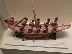 Hölzernes Modell eines Ruderbootes aus dem historischen Ägypten, 21. oder 20. Jahrhundert v. Chr.