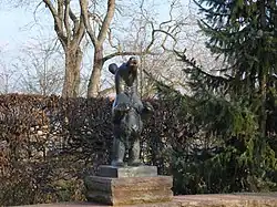 - vor 1941: Flusspferd mit Mädchen, Bronze auf Muschelkalksockel