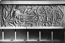 Keramikrelief im Speisesaal der ehemaligen Fahrbereitschaft des Ministeriums des Innern Berlin in der Herzbergstraße