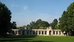 Eine weite Brüstung fasst bis zur Carl-Zuckmayer-Brücke im Halbrund eine Wiese ein, die von breiten baumbestandenen Wegen gesäumt ist. Auf dieser Wiese wurde 1951 eine öffentliche Fernsehübertragung[2] veranstaltet. Viele Bänke und im Sommer ein Biergarten am Milchhäuschen laden zum Verweilen ein.