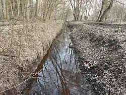 ![]() Mündung der Rugenwedelsau (Vordergrund) in die Mühlenau (Pinnau) | ||