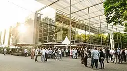 Eine Wand am Eingang des Festspielhauses trägt folgende Inschrift: