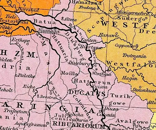 - ↑ Ulrich Nonn: Pagus und Comitatus in Niederlothringen. In: Bonner Historische Forschungen. Band 49. Bonn 1983, S. 80–81.