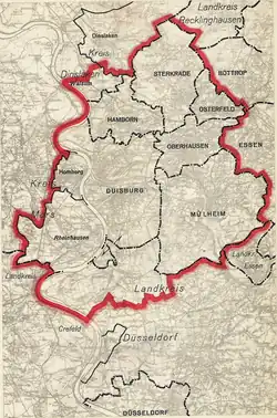 Der Vorschlag wurde gemacht, da der Plan einer Ruhrstadt von Duisburg bis Dortmund aufgegeben worden war. Stattdessen dachte man darüber nach, das heutige Ruhrgebiet in etwa fünf Großstädte um die Stadtkerne Duisburg, Essen, Gelsenkirchen, Bochum und Dortmund einzuteilen. Auch der Vorschlag einer Ruhrmündungsstadt scheiterte schließlich am Veto der selbstständigen Städte Mülheim an der Ruhr und Oberhausen sowie am Widerspruch der preußischen Regierung.