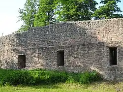 | Erhaltungszustand | Umfassungsmauern, Turmrest, Graben und Wall | |