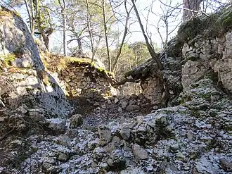 ![]() Mauerreste der hinteren Burg vom Westen. | ||