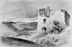 ![]() Pinselzeichnung der Burgruine Rauber von August Seyffer aus dem Jahr 1813/14 | ||