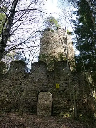 Ruine Grünburg: Vorwerk mit Rundturm | ||