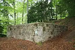Bei Ausgrabungen 1936 wurden Mauerreste eines fünfeckigen Turms entdeckt, was für diese Region einzigartig ist. Die Mauerstärke beträgt ungefähr 1,5 Meter, eine Seitenlänge ist gut 5 Meter lang. Der Zugang erfolgte von Norden über einen breiten Graben, der Eingang wird auf der Südseite vermutet.