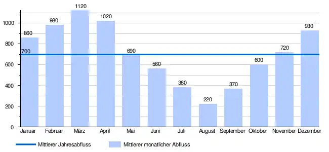 - ↑ Martin Pfaundler, Rolf Weingartner, Robert Diezig: „Versteckt hinter den Mittelwerten“ – die Variabilität des Abflussregimes. In: Hydrologie und Wasserbewirtschaftung (HyWa). Jg. 50, Heft 3, 2006, S. 116–123, hier Tabelle auf S. 119 (Download [PDF; 3,2 MB; abgerufen am 31. August 2020]). Abrufbar unter Gesamtes HyWa Heft 3, 2006..